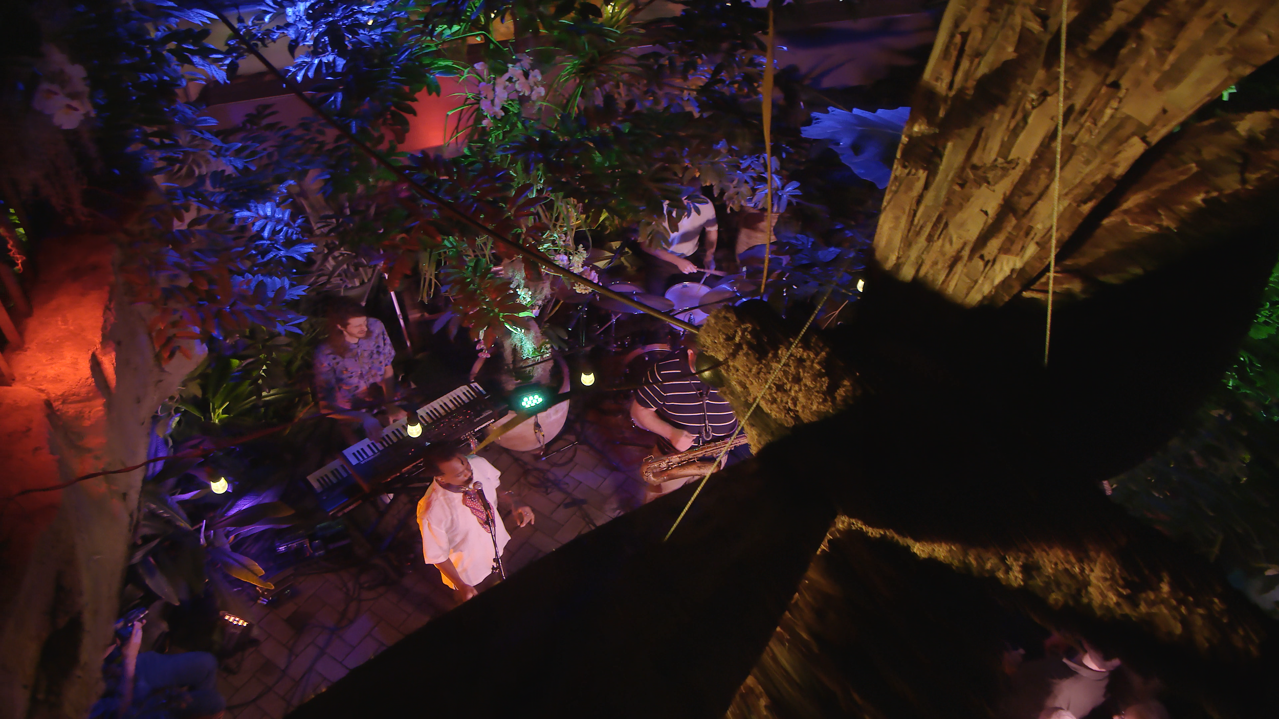 We've got a new term in our lexicon now - The "Moth" Check will forever be a line item in future walkthroughs to check for possible environment changes. During our pre-show walkthrough a couple weeks earlier, we had found the perfect place for our jib up on the balcony above the band. Cut to the day of the shoot, we walk into the gardens... and there is a giant moth floating overhead completely obscuring the path of the jib!